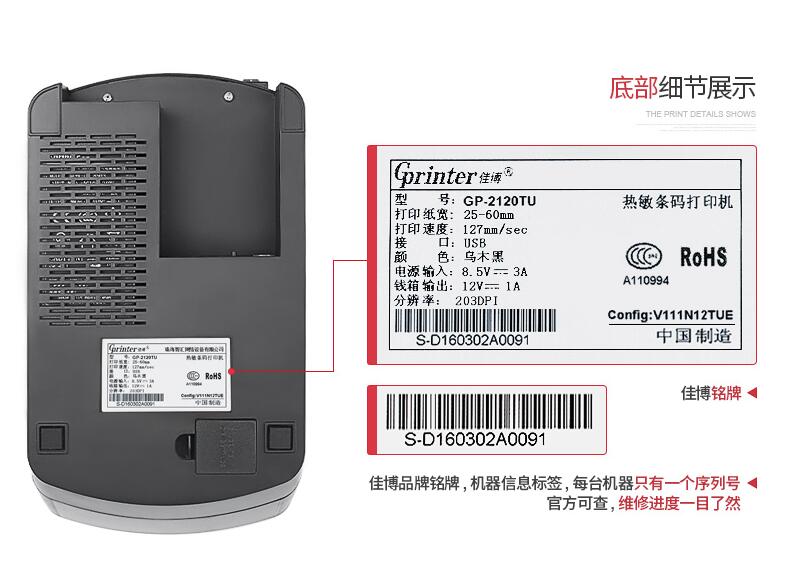 佳博GP2120TU熱敏打印機(jī)不干膠三防貼紙手機(jī)服裝吊牌貨架條碼藍(lán)牙二維碼奶茶超市面包食品價(jià)格倉(cāng)庫(kù)標(biāo)簽打印機(jī)
