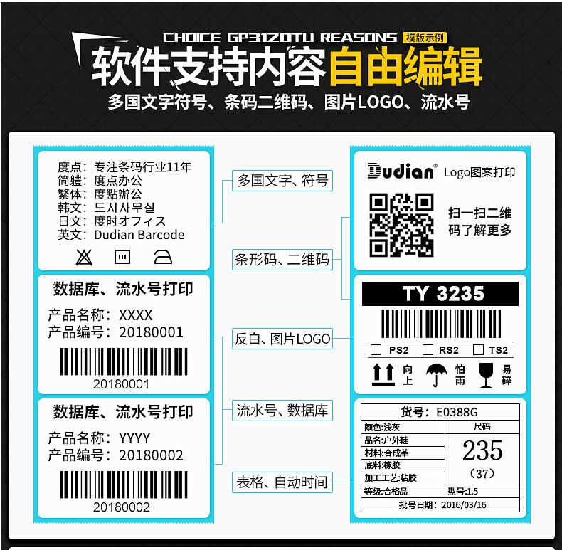 佳博GP3120TU熱敏條碼打印機 不干膠標(biāo)簽機服裝吊牌價格貼紙 超市收銀奶茶手機藍牙二維碼商食品面包月餅倉庫